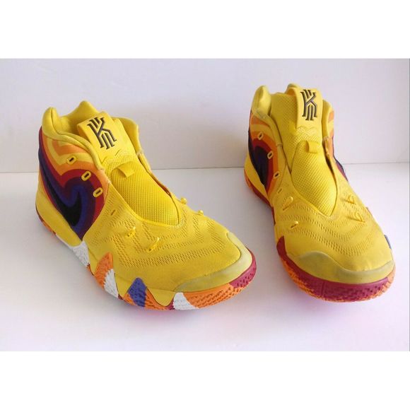 Nike Kyrie 4 70s Decade Amarillo Red Orange White 943806-700 Size 13 - No Laces. Very good used condition. Some minor stains add pictured. Insides and soles are in excellent shape. Shipped with USPS Priority Mail.