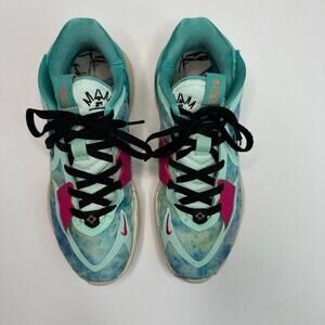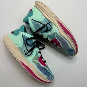 Nike Kyrie 5 Low Community Mens Size 8.5 Blue Basketball Athletic Shoes Sneakers. Jewel Lloyd version. Lace up. Multicolor. Rubber sole. One lace is slightly frayed, and some wear on toes, see photo. Good used condition. Mens size 8.5.