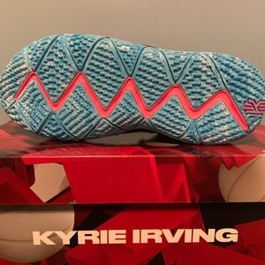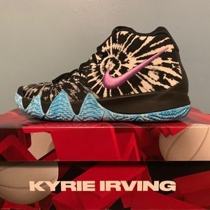 Taking inspiration from Los Angeles neighborhood Venice Beach, this Kyrie 4 ‘All Star’ sports a casual tie-dye graphic across the upper with a bright pink Swoosh at the center. Underfoot, a matching black midsole with a Zoom Air heel and an ocean-blue outsole complement the beach vibe. Still in the box. Never been worn.