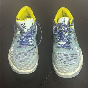 Nike basketball shoes with a blue and neon yellow color scheme. Great for the basketball court.