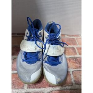 Elevate your basketball game with these Nike Kyrie Flytrap III Basketball Sneakers in White and Blue. These sneakers feature a lace-up closure and hook & loop strap for a secure fit on the court. The synthetic upper material and mesh features provide breathability and comfort for intense games.