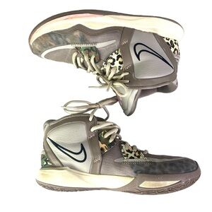 Kid's Youth Size 6Y Leopard Camo (GS) Grade School Style DD0334-006 Kyrie Infinity GS 'Leopard Camo' Colorway Light Iron Ore/Moon Fossil/Coconut Milk/Black MADE FOR QUICK MOVES WITH KYRIE'S SWAG. PLAY WITH THE SIZZLE AND FLAIR LIKE ONE OF THE GAME'S BEST IN THE KYRIE INFINITY. THIS EDITION OF KYRIE IRVING'S SIGNATURE SHOE IS MADE FOR FLEXIBILITY AND A SNUG FIT SO YOU CAN CROSS OVER AND CHANGE DIRECTIONS QUICKLY ON THE COURT. HIS SIGNATURE LOGO ON THE TONGUE DISPLAYS THE STAMP OF THE CHAMP WHILE YOU PLAY.
