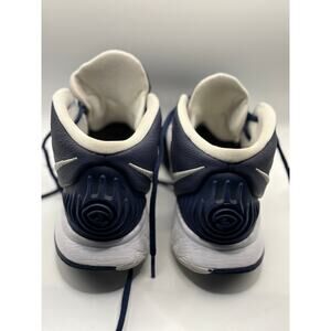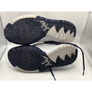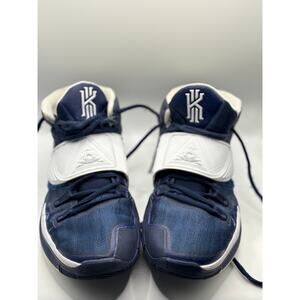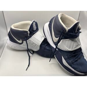 Step up your game with these Nike Kyrie Irving basketball shoes! These stylish sneakers feature a sleek design with a dark blue and white color scheme that's sure to turn heads on and off the court.
