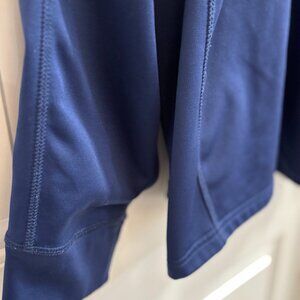 Nike LIVESTRONG men’s athletic 1/4 zip pullover in navy blue with yellow logo and stripe detail. Soft fleece interior, perfect for workouts or casual wear.