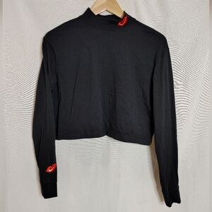 Nike LONG SLEEVE SHIRT BLACK MOCK ROLL SWOOSH KISS Small S DB9735-010