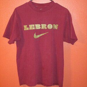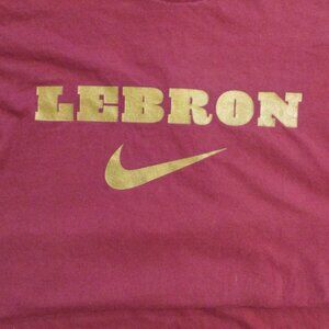Nike Labron James Men Medium Red Gold Graphic Short Sleeve Shirt