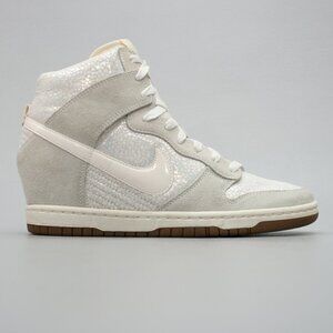 Nike Ladies 9.5 Dunk SKY HI Metallic Luster Pearl Hidden Wedge Heels 585560-003