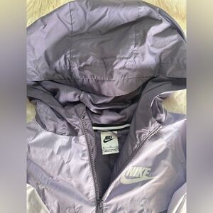 Nike jacket in lavender and white. Features a hood and front zip.