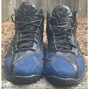 Nike LeBron 11 EXT Blue Denim Black Leather Sneakers Size 13