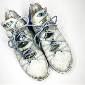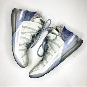 LeBron knows his legacy is about more than on-court accomplishments and accolades, points scored, titles won. For him, it’s about leaving the game better off than before, for the generations who got next. The LeBron 18 "Play for the Future" colorway features a white/clear/blue-tinted design inspired by the clean, unpolluted air athletes* need to breathe when they ball, now and in the future.