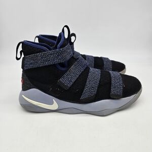 Nike LeBron Soldier 11 XI Black Blue Grey Basketball Shoes 918369-005 Youth 7Y