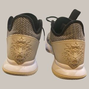 Nike LeBron Witness 4 Basketball Shoes, 10.5 Size. These sneakers are designed for performance on the court, featuring a String/Volt colorway with mesh uppers for breathability and support. The LeBron Witness 4 includes Zoom Air cushioning for responsive comfort and a lion head molded detail on the heel, representing LeBron's iconic logo.