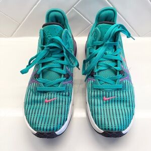 Keywords: Nike, LeBron Witness 6, men's sneakers, basketball shoes, athletic footwear, mid-top, dynamic fit, breathable, responsive cushioning, durable traction, supportive structure, multicolor, size 9, pre-owned.