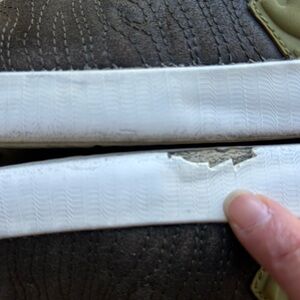 LeBron Hi top sneakers in Sz-8.5 pre owned with some wear but still good over all. Chip on outer right shoe (see pic)