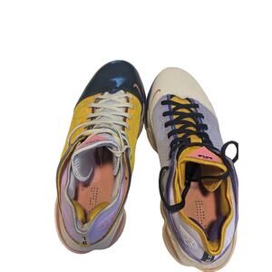 The Nike LeBron 19 Low Mismatch stands out as a performance-oriented pair of shoes, integrating Flywire cables for a tailored fit and responsive Zoom Air cushioning, wrapped in an array of multicolored tones.