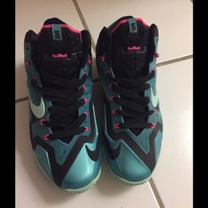Nike Lebron 11 south beach green and pink sneaker. (Flyware). Use one or two time. Excellent condition.