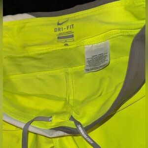 Nike Leggings Women Large Neon Yellow Dri-Fit Cropped Stretch Bottoms.