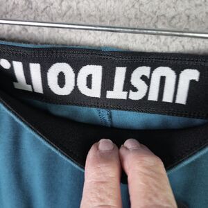 Unveil your active lifestyle with these sleek Nike leggings, tailored for women seeking both style and functionality. The deep green hue is complemented by a subtle dark black "Just Do It" vertical spell out and Nike logo at the waist, accentuating the minimalist design. Crafted from 57% certified organically grown cotton, 32% polyester and 1% Spandex, these ankle leggings offer a stretchable waist of 27 inches and a comfortable inseam of 26 inches. They boast lightweight comfort and are perfect for a range of activities from yoga to Pilates, or simply for everyday wear.