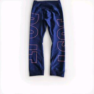 Color: navy with pink oulined Just Do It. print and black with white outlined Nike print on side of pant legs