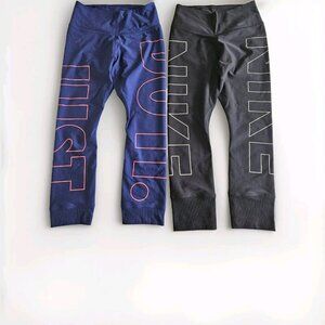 Nike Leggings Womens XS Lot of 2 Dri-Fit Swoosh Spell Out JDI Cropped Stretch