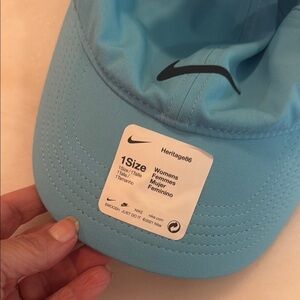 Light blue cap with iconic black Nike swoosh. Ideal for everyday style.