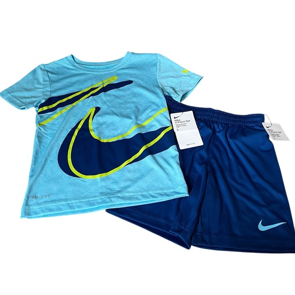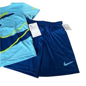 Nike Light Blue and Navy Kids Set Shirt & Shorts Dri Fit Boys Size 5 New