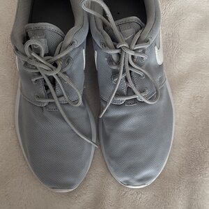Light gray sneakers with a white Nike logo. Ideal for everyday wear.