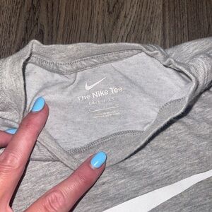 Light gray Nike tee featuring a white swoosh logo. Ideal for everyday comfort.