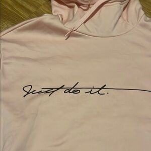 Soft light pink hoodie with 'Just do it.' script. Casual and trendy. Super soft. E10