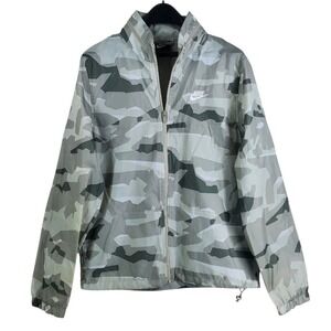 Nike Lightweight Camo Jacket Mens S Green White Zip Windbreaker Water Repellant