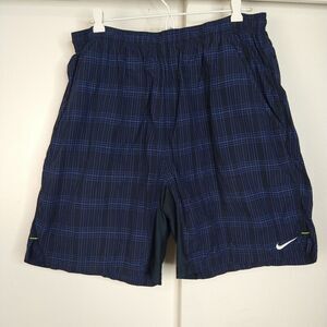 Nike Lightweight Check Swim Shorts Men's Size XXL Blue Embroidered logos