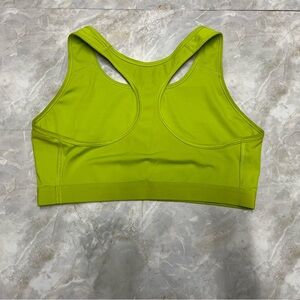 Elevate your workout wardrobe with the Nike sports bra, designed in a striking lime green shade. This piece offers a classic racerback design for enhanced support and mobility. Crafted from a stretchy, athletic performance fabric, it ensures comfort and durability. The iconic white Nike swoosh adds a touch of brand authenticity to this essential activewear item. Gently used.