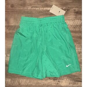 The Nike Little Boys Dri-FIT Icon Woven Shorts are a stylish and practical choice for active young boys. These solid green shorts feature a drawstring closure and an elastic waist for a comfortable fit. Made from polyester blended fabric, they are machine washable and perfect for gym workouts, yoga, or running. The mid-rise waist and flat front give a classic look, while the Nike logo adds a sporty touch. Ideal for the summer, fall, and spring seasons, these athletic shorts are a must-have for any young athlete.