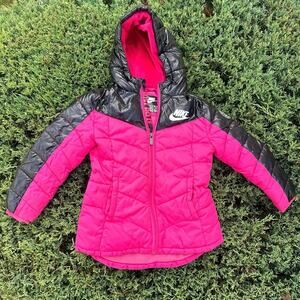 Nike Little Kid Girls Colorblock Hooded Puffer Jacket Size 4 XS Pink Black