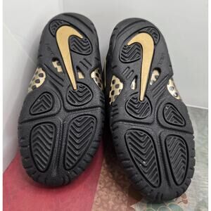 In excellent clean condition. The Nike Little Posite Pro GS Black Metallic Gold sneakers in size 7C are a stylish and comfortable choice for active boys. With a round toe shape, lace-up closure, and maximum cushioning level, these sneakers are perfect for both activewear and casual occasions. The black and metallic gold colorway adds a touch of retro flair, while features like a seamless Foamposite upper and Nike Air Zoom technology ensure a high-performance fit. Perfect for various seasons and activities, these Nike Little Posite Pro sneakers are a great addition to any young sneakerhead's collection.