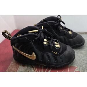 Nike Little Posite Pro GS Black Metallic Gold Size 7C 644792-010 Excellent Cond.
