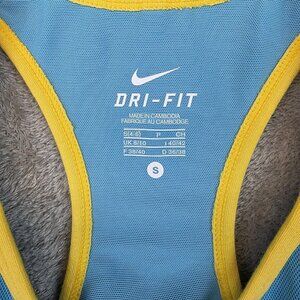 Style: Dri-FIT racerback athletic tank top with contrast yellow binding