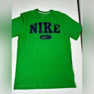 Nike Logo Green 100% Cotton Graphic Letters Tee Shirt Size L