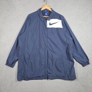 Nike Long Jacket Womens Size XL Navy Collared Button Snap Relaxed Fit Sportswear