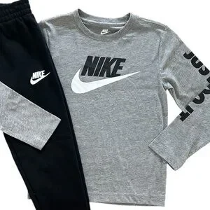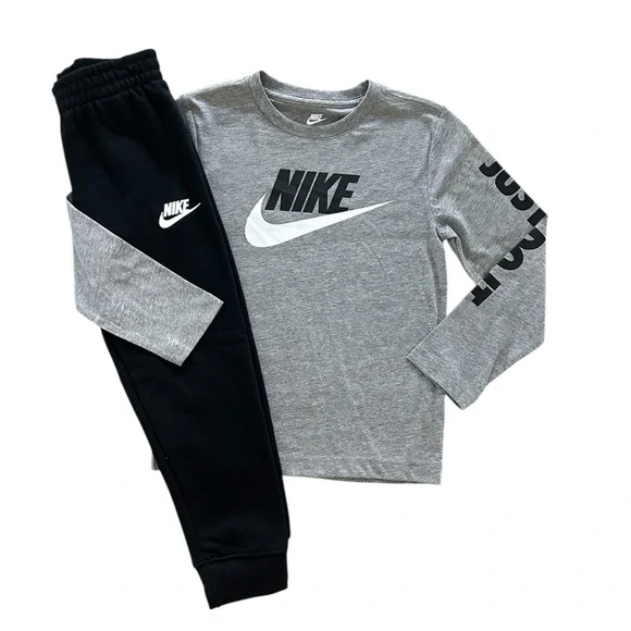 Nike Long Sleeve Logo T-Shirt & Black Jogger Pants 2 Piece Set Boys Size 6 NWT