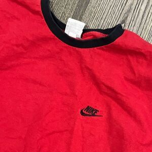 Nike Long Sleeve Tee Crew Neck Embroidered Logo Cotton Pullover Red Black Large