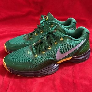 This is a very lightly used pair of Nike Lunar TR1 Oregon Ducks Mesh Sneakers in Apple Green. They are a mens size 10.5 and are in great used condition!
