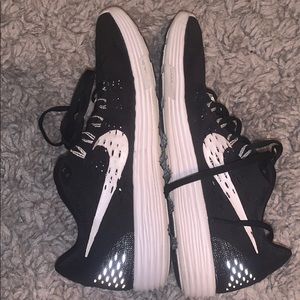 Size 10, but fit a little smaller. Black and white shoes, good condition.