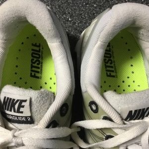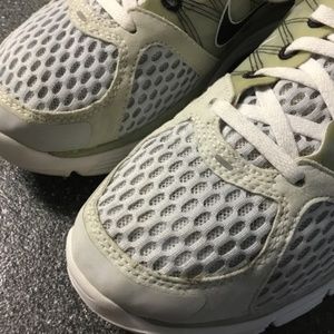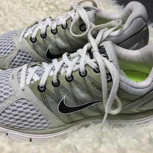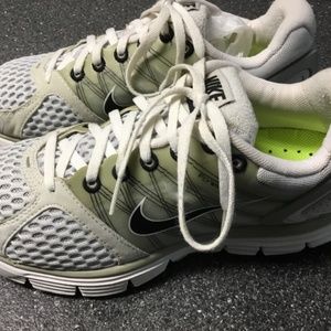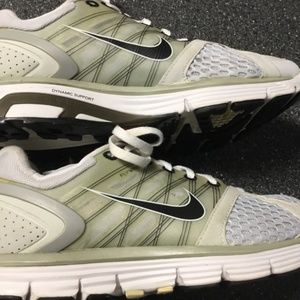 Preowned Women’s Nike Lunarglide 2 Flywire Running Shoe. VGUC. Size 8. Footbed is clean with no staining. Soles show some mild staining in one spot (see pic) but treads show hardly any wear. Outside is clean and shows some minor wear and small glue staining (see pics) but still very nice and lots of life left in these. Cleaned and sanitized. From NS home. Reasonable offers always considered.