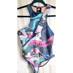 Nike M Women's Bodysuit Swimsuit Graphic Multicolor Slvless Hig Neck Zip NWT