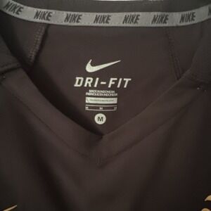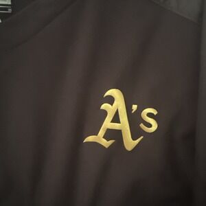The product is a Nike MLB Oakland A's Dri-Fit Long Sleeve Pullover Sweatshirt in men's size M. It is designed specifically for fans of the Oakland Athletics baseball team in Major League Baseball. The black sweatshirt features the official team logo and is made with Nike's signature Dri-Fit technology, ensuring comfort and performance for the avid baseball fan. Perfect for wearing during games or as a stylish everyday outfit for supporters of the team. Does have pull string to adjust to tightness on the waist line.