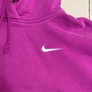 Bold magenta Nike hoodie. Features a drawstring hood and white logo. Excellent condition except for the small pin hole in one sleeve as seen in pic.