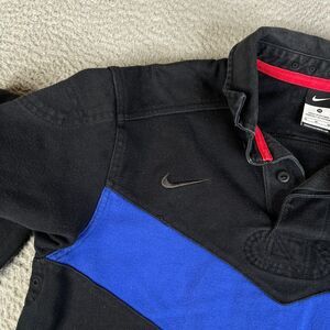 Nike Manchester United Long Sleeve Rugby Shirt Men M Black Blue Embroidered