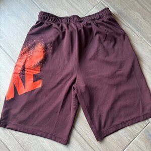 Train, lounge, or play in these Nike maroon gym shorts featuring the iconic orange Swoosh logo. Lightweight and breathable for all-day comfort.