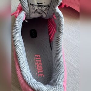 Vibrant pink Nike shoes with gray accents. Designed for comfort and style. Ideal for athletic activities.